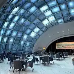 Qingdao Yunshanghaitian·Yunring Restaurant & Wine is a high-rise culinary and music complex offering panoramic views of the Qingdao coastline and downtown. Located on the 80th to 82nd floors of the T2 Tower, the building itself stands at 369 meters, making it the tallest structure in Qingdao.