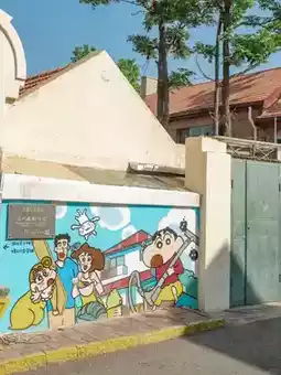 This charming little street in Qingdao 🇨🇳 is brimming with cuteness. Along the way, you'll find brightly painted walls with chibi cartoon designs that look like they came straight out of a manga world! 😍