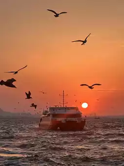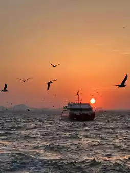 2. Orange Sea Silhouette: Choose the 17:30 departure, shoot against the light on the stern deck. Light-colored long dresses flutter in the wind, and the sunset dyes the sea orange like soda pop.