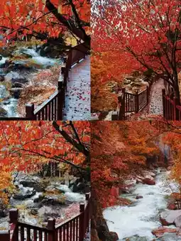① Beijiushui Chaoyin Waterfall: Perfect match of red leaves + waterfall
