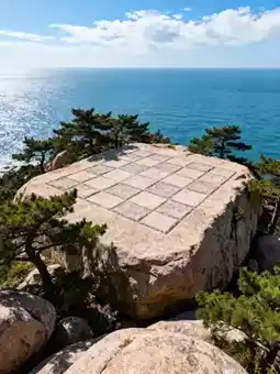 After buying the ticket to enter the mountain, I first walked along the stone steps toward Mitian Cave. The cave was narrow and steep, and in some places, I had to bend down to pass through. Shining the flashlight on the stone walls, I could see the wet moss. The moment I finished climbing the cave and stood on the viewing platform, all the fatigue was worth it—below me, layers of waves were crashing against the rocks, and the distant small islands looked like green gems scattered on the sea. The sky was especially blue, and even the clouds drifted slowly.