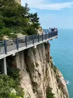 Departing from the city at 8 a.m., I took a tourist shuttle bus to Yangkou Scenic Area, which took about an hour. After getting off the bus and walking toward the scenic area, I saw the crystal-clear blue sea and the dark green mountains side by side from afar. The wind carried the salty sea scent mixed with the fragrance of plants, instantly blowing away the stuffiness of the city🌊.