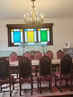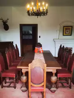 - The inside features restored rooms with traditional fireplaces, wooden floors, and staircases