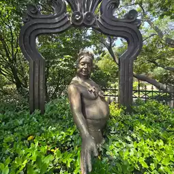 But what caught my eye this time weren’t the walls — it was the bronze sculptures quietly standing in its whimsical garden filled with sculptures of beloved characters