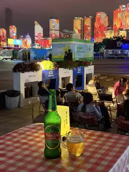 Anyone visiting Qingdao should definitely come here to chill out in the early evening. The atmosphere is superb, with numerous shops open. They sell souvenirs, seafood, and, of course, Tsingtao beer. Every evening, a singer plays free music. You can buy food nearby and enjoy the view of the sea and the lit-up buildings. The atmosphere is excellent, the food is cheap, tasty, and affordable. Just sitting here, sipping beer, listening to great music, enjoying the cool breeze, and the stunning view is worth it.