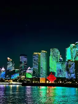 📌 The highlight of Qingdao's nightscape! An LED show unfolds across the entire skyscraper.