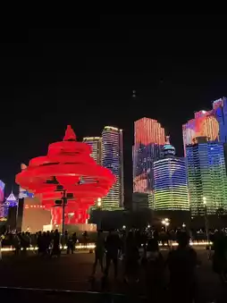 ✔️ The best time to visit is around sunset, when the sky changes color and the red sculpture lights up.