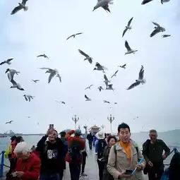 Long pier with The signature chinese style pavilion also featured on the beer bottles. Lots of people feeding seagulls there.