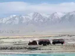 #青海大柴旦玉玉湖 You have to get up early to visit the 玉玉湖. The photos taken will be very beautiful, but be aware that the temperature is low in the morning. The lake left by mining in the snow-capped mountains in the distance forms a good composition.