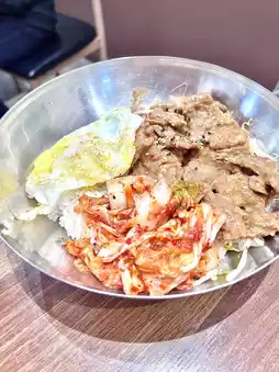 We ordered vegetable bibimbap, pork rib rice, barbecue rice, pork kimchi pot and Korean fried dumplings. What is amazing is that although the taste is unpretentious, it makes people eat with relish Also gave enough, after eating probably There are also to nine points full, the price is also very affordable, for example, I ordered a vegetable bibimbap only 90 yuan, and vegetable bibimbap is also included barbecue, no wonder even the weekday lunch time is packed, recommended to Everyone who likes to eat Korean food!