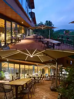 It is equipped with a cafe, sunset swimming pool, landscape restaurant, and bonfire. The cafe closest to the canyon is an excellent viewing spot.