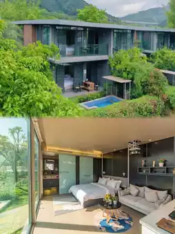 ❤️Quanxian Hot Spring B&B: The overall design is minimalist black and white, full of modernity! 18 small villas with gardens and direct access to the swimming pool, Zen gardens, stacked swimming pools, contiguous barbecue and camping areas...taking pictures is beyond photos!
