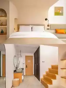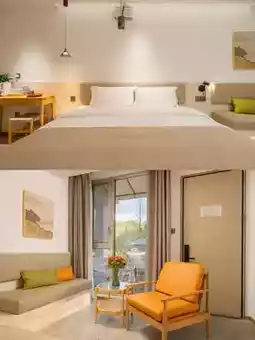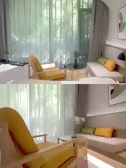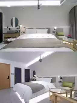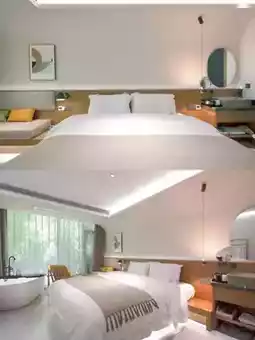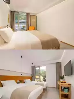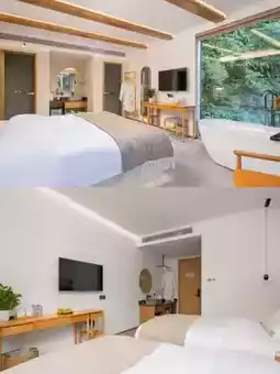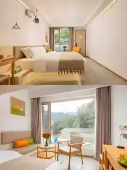 The B&B is backed by mountains, full of natural atmosphere. There is an outdoor swimming pool in the B&B. It is very rare in the mountains. It is paired with the local specialty Huangjing tea of Jiuhua Mountain. It feels like a vacation. In the evening, the sky is dim. Gentle lights are lit everywhere in the B&B. The artistic conception is even more full~