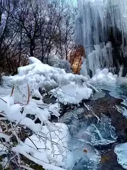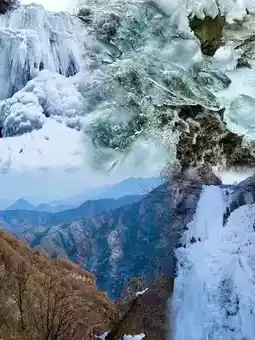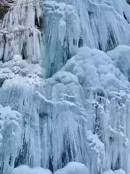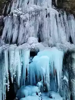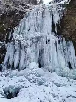 In winter, the place is covered with ice and snow, and the waterfall in the mountains is frozen. The crystal clear ice waterfall hanging down from the sky is particularly spectacular! In the season of ice and snow, with snowflakes flying all over the sky, how can there be no ice waterfall