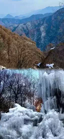 Located in Tanyukou Village, Shijing Town, Huxian County, Shaanxi Province, one of the 72 gullies of Qinling, the first snow has come, and the valley of Tanyu is covered with snow, covered with ice and snow, crystal clear, the ice waterfall is about 20 meters high, and there is a large area of ice around the ice waterfall, which is very spectacular!