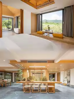 🏢 The main building features a unique wabi-sabi style. The restaurant on the first floor has private rooms with excellent privacy. And there are floor-to-ceiling windows, so you can enjoy the view outside while dining! The owner is very thoughtful, our family's dinners for two nights were arranged in a private room, which really felt like a banquet! And the dishes are super tasty, you can order in advance with your phone, and after coming back from playing, you can start eating right away, which is very convenient! The elders said they had a very comfortable meal!🍛🍷😋