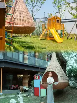 🌿 The design inside the yard is also quite unique and interesting! You can take photos on the large lawn and unleash your photography skills. Moreover, this place is perfect for bringing kids because there's a fairy tale playground in the backyard! Slides, sandpits, treehouses, and ball pits, the kids will have a blast!🌳🎠🎪