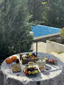 Sit in a place without a ceiling and enjoy the holiday, watching the sunlight spread over the rolling mountains~