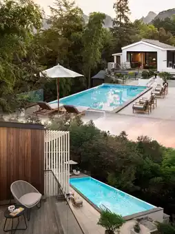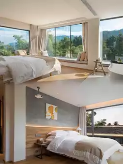 The beauty of nature. The boundless mountain view swimming pool faces the bamboo sea of the mountain forest, offering an unobstructed view of the rustic mountain scenery, resembling a clear and bright sapphire in the midst of mountains and seas. The Zen meditation tea room and independent bar are available for you to enjoy a pot of tea during your leisure time, serene and tranquil, where you can also catch up with old friends over a drink, comfortable and relaxed. The children's play area is a paradise for kids, with picture books and safe, eco-friendly toys all available. The vast outdoor space allows your children and pets to have plenty of room to play and embrace their natural instincts. Jiuhua Lianli has a total of 12 rooms, each with its own characteristics. There are rooms with superb panoramic views, elegant independent courtyard rooms, large terrace rooms with views, and cozy family rooms.