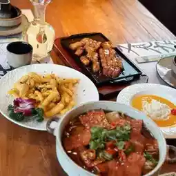 🍲Miss Xu's private dishes, the dishes are delicious😋The wok is full of energy, and the dishes are served quickly. Specialties include fried eggs with stone fungus, Jiuhua stone chicken, and braised pork with dried bamboo shoots (the rice here is put in a small bucket on a wooden barrel, and you can serve it in a bowl by yourself, and the owner will scald the cups with hot water👍)