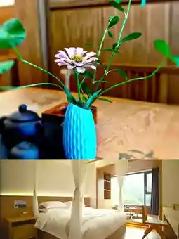 • The small round table in the sofa area is perfect for tea and daydreaming. Outside the window are bamboo groves and rapeseed flower fields. Visiting in April gives you the feeling of "verdant mountains and waters."