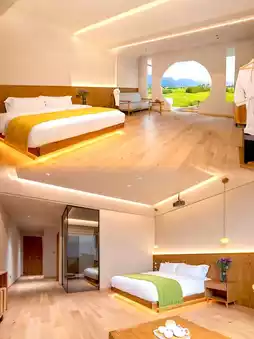 The rooms feature a modern Chinese style with wooden furniture and cotton-linen curtains. Ink wash landscape paintings hang on the walls, preserving Hui-style charm while being modern and comfortable. The bedding is high-thread-count cotton, soft like being wrapped in clouds, and the soundproofing is excellent—you only hear insects and mountain winds at night, sleeping very soundly. Some rooms have scenic balconies where you can open the window in the morning to see endless mountain views and smell the fresh grass scent. The toiletries are custom Huazhu Luxury products with a sophisticated fragrance, and even the bathrobes are made of soft cotton—detail lovers will be thrilled!