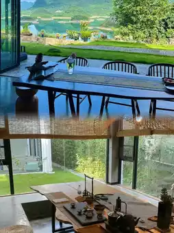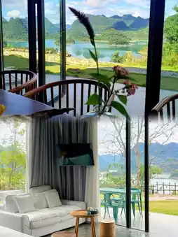 The overall style of the B&B is simple yet upscale, with grey walls and wooden furniture complementing each other perfectly! 😘The courtyard faces the mountain and lake scenery, just like an ink painting, it's truly Qingyuan's "Little Guilin"! ❗️Here, you can daydream, have afternoon tea, and enjoy a quiet and comfortable weekend! 🤗