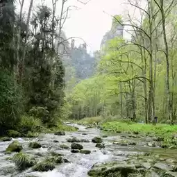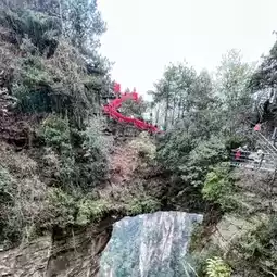 When you walk to the depths of the canyon, you can hear the sound of gurgling water. When you look up, you can see the majestic Longmen Waterfall cascading down from the towering cliffs, with water curtains falling like curtains, splashing water, and the momentum is like a storm hitting the shore.