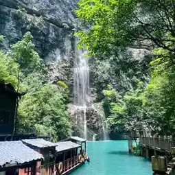 Gulong Gorge is like a paradise, with rugged cliffs and cascading waterfalls, creating a magnificent natural scenery.