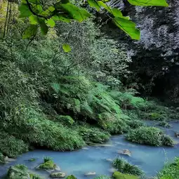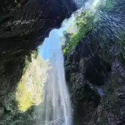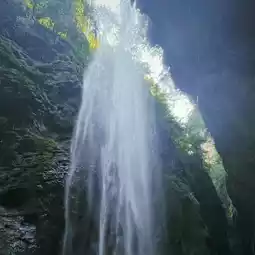 As we wind our way up the cliff, we gradually see a waterfall cascading down. The clear waterfall falls from a cliff tens of meters high, stirring up bursts of foam and forming a silvery-white waterfall curtain, which is extremely spectacular. The lush green forests and mountains around it, together with the waterfall, create a breathtaking natural picture.