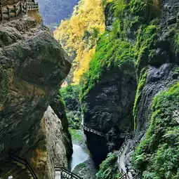 Gulong Gorge is a natural landscape with winding mountain paths and beautiful scenery. When I stepped into the canyon, I was immediately shocked by the magnificent sight before my eyes. Steep mountain walls stand on both sides, and the canyon is deep and narrow, giving people a feeling of adventure and exploration.