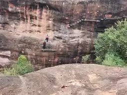 Known as the No. 1 Via Ferrata in Lingnan, the thrilling route challenges the courage and intelligence of the participants. It is a climbing method that uses iron ropes and foot pedals to climb cliffs.