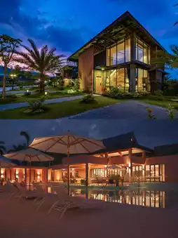River Hot Spring Vlog Hotel: Exotic style, feels like a vacation in Morocco. There are tent camps 🏕️ and treehouses, which kids love.