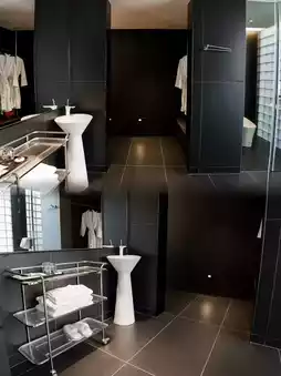 - The overall design is minimalist, with black and white as the main tone, matched with Zen gardens and a central swimming pool, creating a spacious feel.
