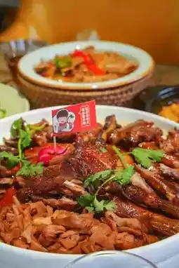 The goose meat is tender and juicy, with rich taste