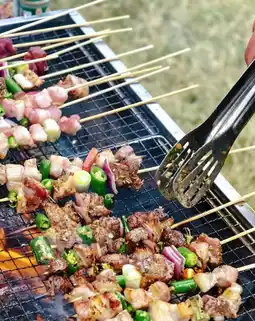 🏕Camping and BBQ: Grill meat, drink, and chat together, enjoying the pleasant spring day.