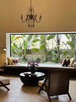 The "Ancient House Family Loft Suite" where I was staying was converted from the village's old granary. In the 180m² space, the exposed wooden beams and cement walls create a collision of roughness and refinement. The room retains the high ceilings of the old house, and the carved wooden windows of the second-floor bedroom face the rice paddies. When I woke up to the sound of birds in the morning, it felt as if I could reach out and touch the rolling waves of rice. The biggest surprise was the private hot spring pool in the courtyard, which is fed by local metasilicic acid mineral hot spring water. Soaking in the pool and watching the stars is much more interesting than in an Internet-famous hot spring house. According to the butler, 17 of the 40 guest rooms are old houses that have been restored to their original state, and even the copper rust on the latches has been deliberately preserved. However, facilities such as underfloor heating and smart toilets are seamlessly integrated into the rooms.