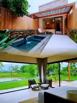 The design of the hotel is very unique. It retains the livable environment of the ancient village, restores 17 old houses, and incorporates ten new white buildings. The contrast between the old and the new is very impressive. Both the public areas and guest rooms allow you to get close to nature and relax. There are various types of guest rooms, most of which have private viewing pools, spacious terraces, panoramic windows or private courtyards, giving you a full vacation feel!