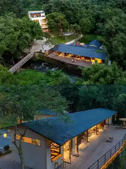 Nestled in the arms of the green mountains of Gulong Gorge, white walls and black tiles are dotted with bamboo forests and streams, and thousands of peaks can be seen from the window. The 20+ Zen-style rooms come with a viewing terrace/private courtyard, rose bath, tatami tea seat, and starry sky cinema… Incorporating Chinese aesthetics into every inch of your breath ✨