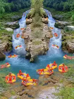 • "South China's No. 1 Rafting" is well-deserved: the entire 6.1-kilometer river channel has a drop of 378 meters. The "one ring after another" rapid bends make the raft rush into the water like a "roller coaster", especially the "vertical drop area". The screams were covered by the waves before they came out~ Remember to hold on to the safety rope, otherwise you will be "wet and hanging" in the next second!