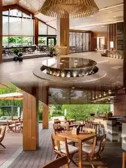 Start your morning with an authentic Cantonese breakfast at the restaurant, featuring hearty Zhouxin congee paired with Qingyuan chicken intestine rice rolls. The signature Cantonese fusion restaurant "Three Tastes Pavilion" is worth a special visit - their executive chef's innovative creation "Tangerine Peel Foie Gras with Hot Spring Buns" brilliantly combines Qingyuan's specialty 15-year Xinhui tangerine peel with French foie gras.