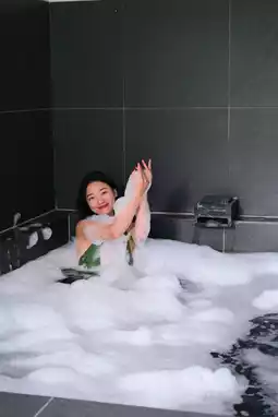 The first floor features a small courtyard and a private mountain spring soaking pool.