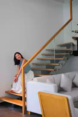 Inside is the living area, while the second floor houses the bedroom and bathroom.