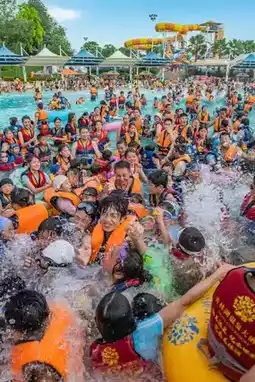 Located in the Meilin Lake Tourism Resort in Shijiao Town, Qingcheng District, Qingyuan City, and right next to the Meilin Lake Hot Spring Hotel, Meilin Lake Happy Water World is easily accessible. It's just a 70-minute drive from the main urban areas of Guangzhou and Foshen—a quick trip! With an investment of over 100 million yuan, this 50,000-square-meter water park boasts more than 10 sets of family-friendly amusement facilities, ensuring fun for the whole family!