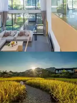 It’s an independent villa in the rice fields, a new popular homestay combining pastoral scenery, wild luxury accommodation, and natural hot springs. Guests can enjoy the fragrant rice fields with private courtyards, private hot springs, and rice field views. The rooms in the homestay are not traditional hotel rooms but independent container-style or wooden villas, each with its own private courtyard and open-air hot spring pool.