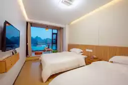 This guesthouse is located within a scenic area, offering a hassle-free and therapeutic experience. Facing the tranquil Taohua Lake, you can start your morning with Baduanjin exercises, enjoy a calming blue-and-white lakeside view while sipping coffee, and unwind. After breakfast, retreat to the spacious terrace to enjoy tea under the warm sun. The picturesque setting feels like a painting, making you want to spend the entire day relaxing without stepping out.