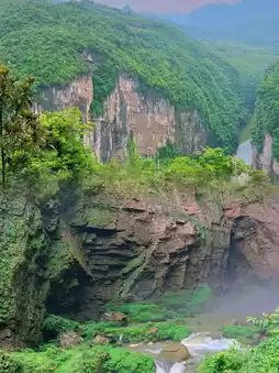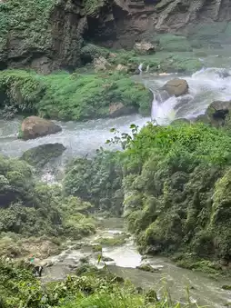 π Yangpi Cave, an unpolished wild waterfall, unlike those famous spots, has an irresistible charm. The waterfall cascades down the mountain stream, splashing water everywhere, like an impromptu performance by nature.