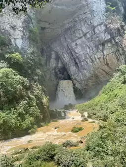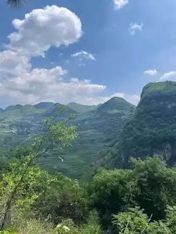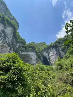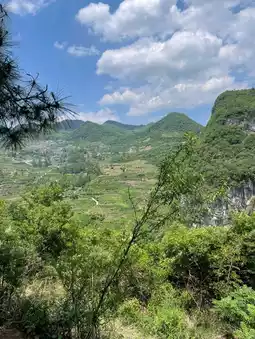 The Yangpidong Waterfall is located in the Anliu River Scenic Area. It is surrounded by dense forests, gurgling rivers, and is very pristine. Basically, you have to drive yourself or charter a car to visit, and you must have good physical strength. Because it is an undeveloped scenic area, you have to walk down the mountain to reach it. Along the way, you will appreciate the surrounding karst landforms. This is definitely a scenic spot that kills two birds with one stone.