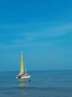 3️⃣Wave Bar: A bionic white building with a sail shape, elegantly situated on the delicate and soft white sand of the Blue Coast's left bank. The terrace facing the sea is a great spot for photos👍. The second-floor nautical library has designed multiple photo check-in spots, with the blue sky and sea as the background, and the white sailboats floating on the sea as embellishments, a casual snap is a masterpiece