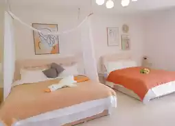 Two large beds, the old, heavy ones, can't be moved if you want to put them together.